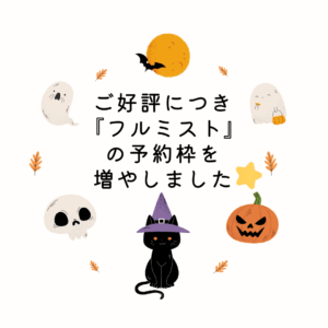 9月16日(火)より開始のフルミストのご予約に関して、システムの不具合によりご予約をお取りできない状況となっておりました。 先程復旧いたしましたため、現在ご予約をお取りいただけます。 皆様にはご不便、ご迷惑をお掛けいたし […]